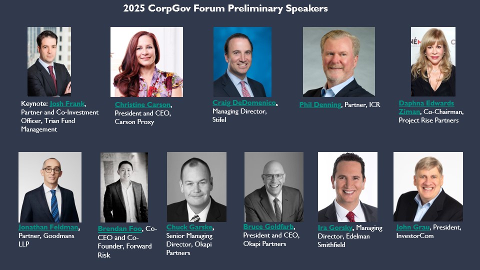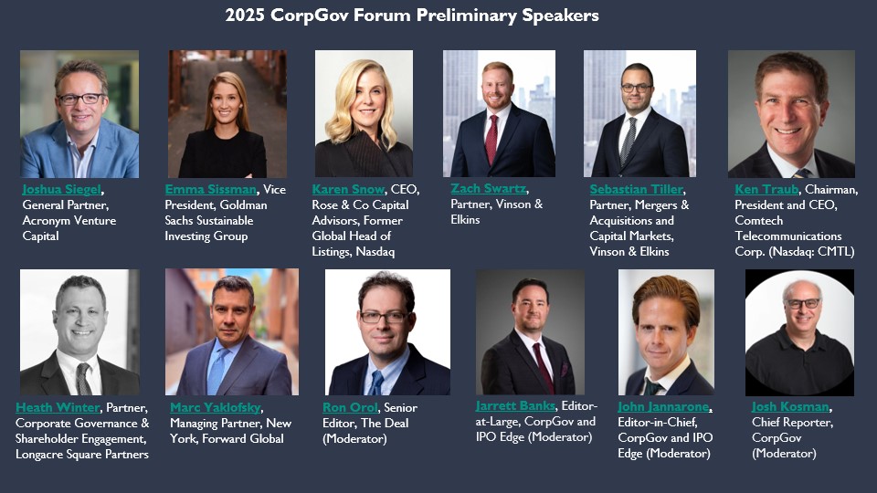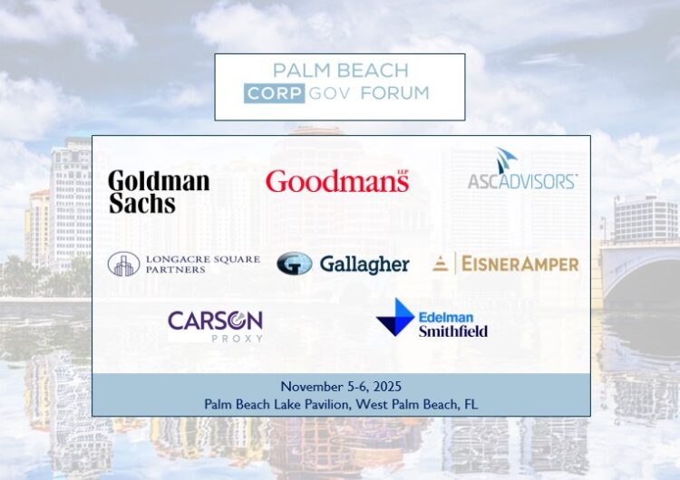 CorpGov, IPO Edge and PE Edge will host the fifth annual Palm Beach CorpGov Forum on Wednesday, Nov. 5 and Thursday, Nov, 6, 2025, at the Palm Beach Lake Pavilion, located waterfront with sweeping views of Palm Beach Island. The Forum will feature panels and firesides from 1pm to 5pm. Networking receptions will follow each day after the event from 5pm to 7:30pm.​