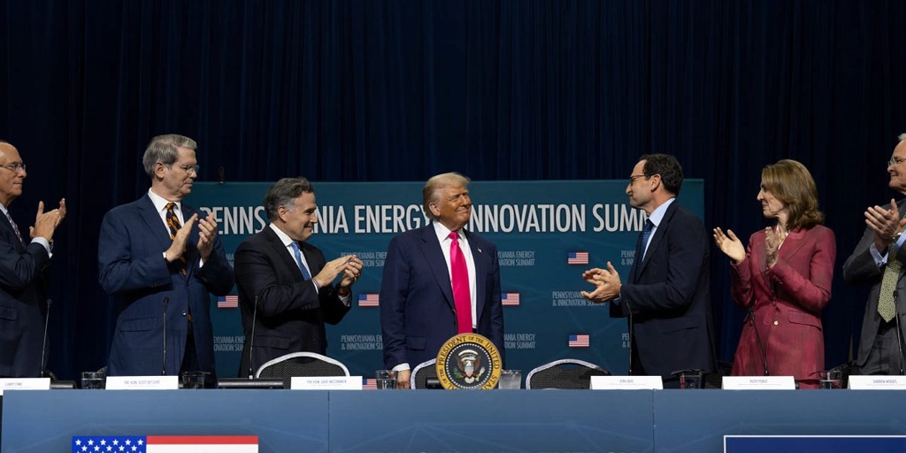 Blackstone Group COO Jonathan Gray on July 15 sat next to Trump announcing a commitment to invest over $25 billion to support the build out of Pennsylvania’s digital and energy infrastructure. The firm said it was forming a joint venture with utility PPL to invest in new natural gas power generation facilities to provide electricity for AI.